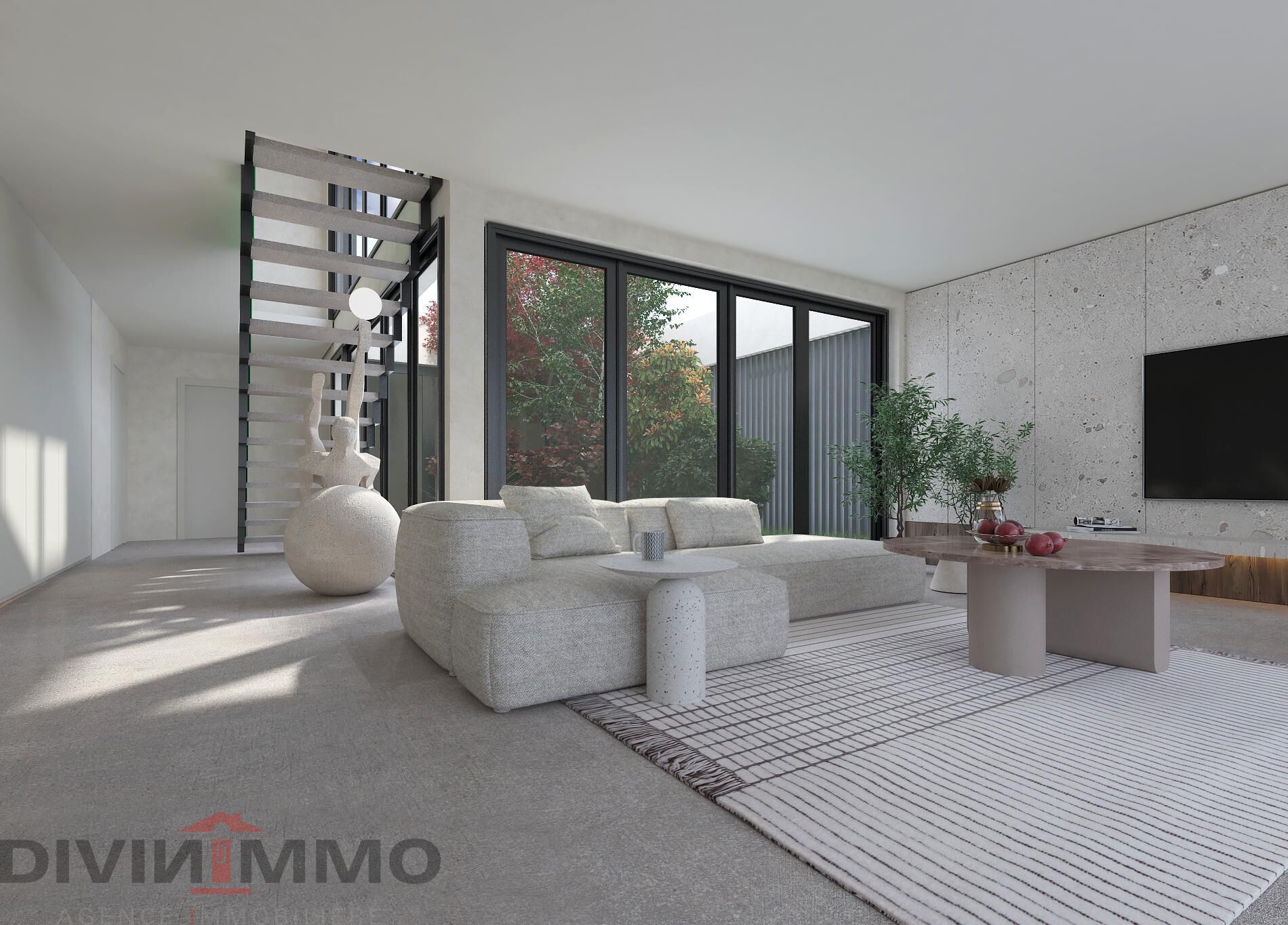 Cette villa bénéficie d'une surface habitable de 175 m2 sur deux niveaux. Elle est construite sur une parcelle de 409 m2. Elle se compose d'un rez-de-jardin, qui comprend d'un hall avec armoires intégrées, d'un vaste séjour avec sortie sur terrasse et pelouse, d'une cuisine américaine, d'un WC visiteurs, d'une chambre/bureau et d'un patio. Le patio étant un espace ouvert et fermé par des lamelles en métal. Local technique, cave.